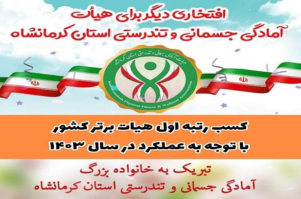 کسب رتبه اول هیات آمادگی جسمانی و تندرستی استان کرمانشاه در ارزیابی هیات های استانی در سال ۱۴۰۳